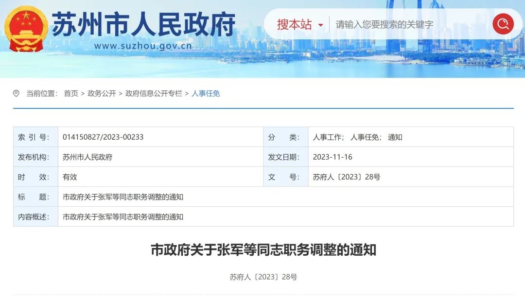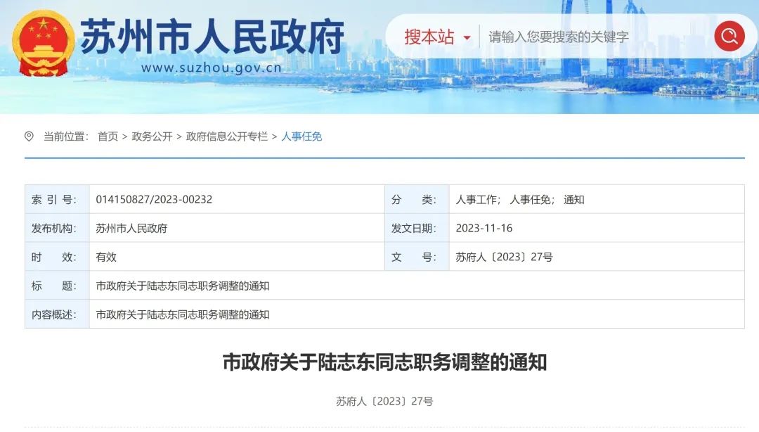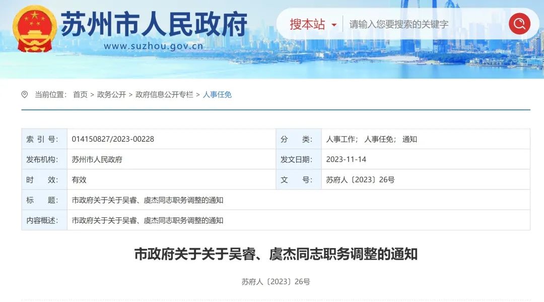 市政府关于关于吴睿、虞杰同志职务调整的通知