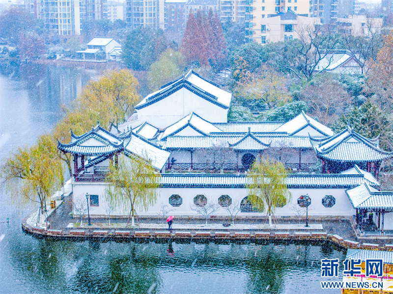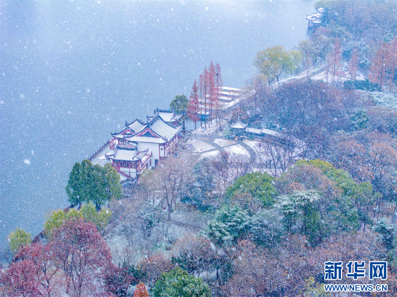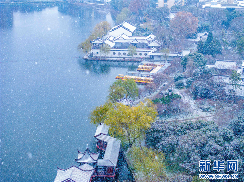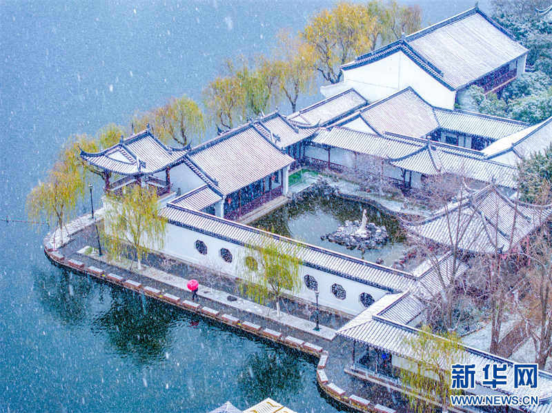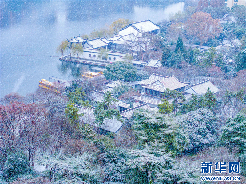 12月18日,南京迎来今冬的第二场降雪。冬日的飞雪装点在南京莫愁湖的亭台楼阁上,给这座江南古典园林增添了无尽的诗情画意。(沙佳仪 素材来源:莫愁湖公园)