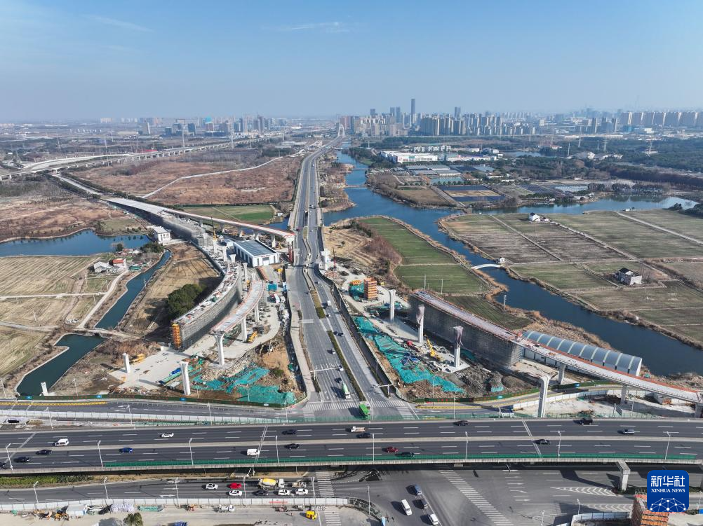 2月3日拍摄的高铁苏州北站快速联络道1标段项目施工现场(无人机照片)。