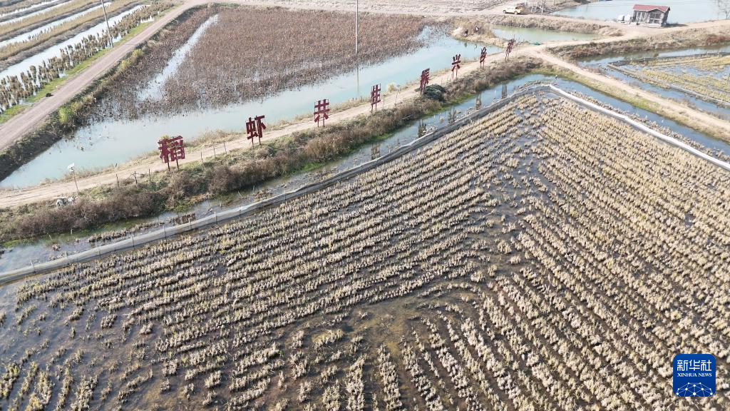 这是盱眙县黄花塘镇一个养殖基地的虾稻田(2025年12月摄)。