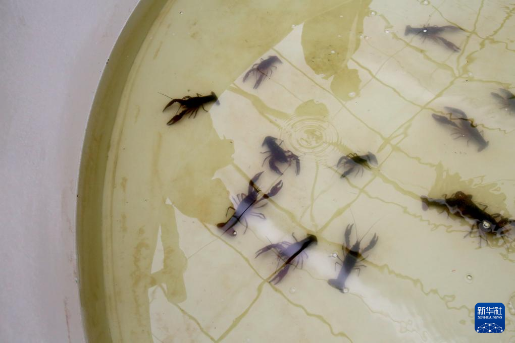 这是在江苏省现代农业(盱眙龙虾)全产业链标准化示范基地拍摄的小龙虾(3月27日摄)。