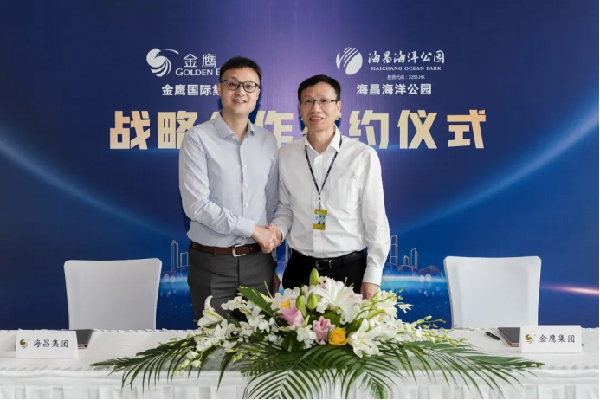 8月24日,金鹰国际集团与海昌海洋公园控股有限公司在南京金鹰世界举行战略合作签约仪式,双方将携手在海昌海洋(探索)馆布局及品牌联动、商业与文旅产品创新、公益关怀事业践行等方面开展合作。海昌海洋公园执行总裁张建斌、金鹰国际商贸集团执行董事兼CEO谈建林出席了活动。