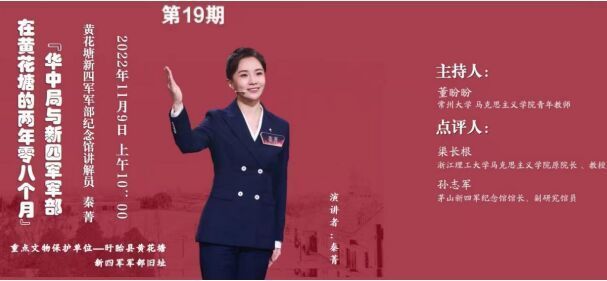 本期邀请了黄花塘新四军军部纪念馆讲解员秦菁担任讲述人,浙江理工大学马克思主义学院原院长、红色文化研究院院长、教授渠长根与茅山新四军纪念馆馆长、副研究馆员孙志军担任点评嘉宾。来自全国馆校合作联盟理事单位的常州大学、浙江理工大学、黄花塘新四军军部纪念馆、聊城职业技术学院等高校部分师生及博物馆人,通过线上的方式参加了此次活动。