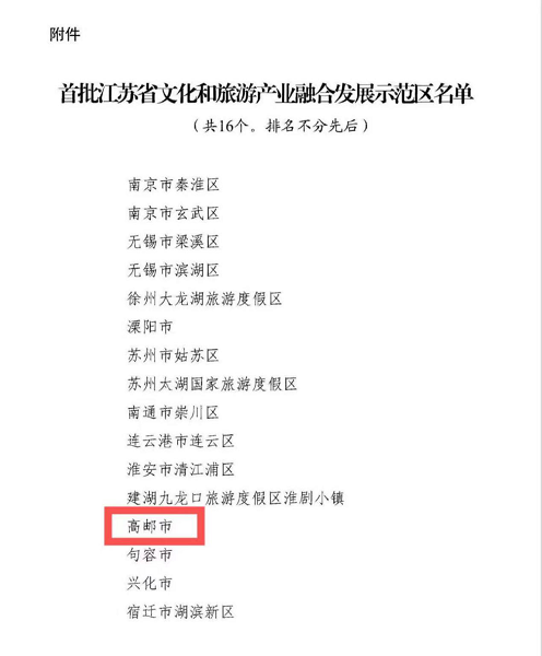 文旅融合产业已成为高邮经济增长的新动力。今年6月,在扬州举办的“2022世界运河城市论坛”,投资1亿元的神居山汉林龙茶业博览园、投资3亿元的启迪荣耀冰雪项目现场签约。今后五年,高邮将围绕“聚焦江苏绿心、加快中部崛起”目标定位,实施“文旅融合发展提质增效”工程,以大运河文化带建设为主线,构建“一轴四组团”文旅产业总体架构,推动文旅产业增加值占GDP比重达15%,旅游收入突破170亿元,力争创成国家级文化和旅游产业融合发展示范区。(邮萱 邮旅轩)