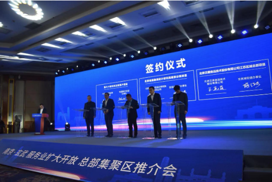 3月31日下午,“一轴贯南北 共耀新征程”南京·玄武服务业扩大开放总部集聚区推介会在北京举办。活动中,近百家在京总部企业应邀出席,水晶石元宇宙创新体验基地、北京电子城集成电路江苏总部、第六十研究所注册落户项目等12个优质项目签订意向协议。