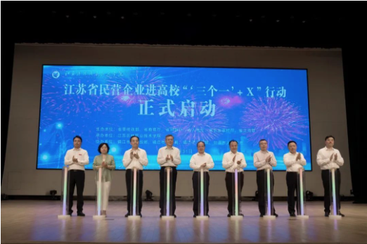 刘军在主持启动仪式时指出,江苏是教育大省,院校数量位居全国第一、高校毕业生人数年创新高;江苏也是经济强省,2022年江苏经济总量突破12万亿元,民营经济增加值占GDP比重为57.7%,为高质量开展民营企业进高校“‘三个一’+ X”行动提供了重要基础和条件。他表示,省工商联将与省有关部门合力共为,坚持提高站位、服务大局,在助力民营经济高质量发展和高校毕业生高质量充分就业工作中积极作为;坚持优势互补、精准对接,积极建立以企业为主体、市场为导向、产学研相结合的技术创新体系;坚持全力以赴、深化合作,持续拓展“三个一”活动品牌、创新“X”行动载体。