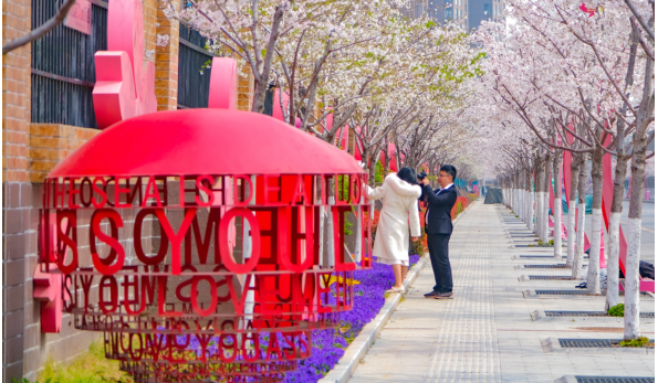 樱花、爱情斑马线、花瓣步道……这样的场景会让你想起什么?漫步于此,婚姻登记处、爱情号列车以及特色独具的网红打卡地标,移步换景、处处有意,弥漫着浓浓的爱情味道。