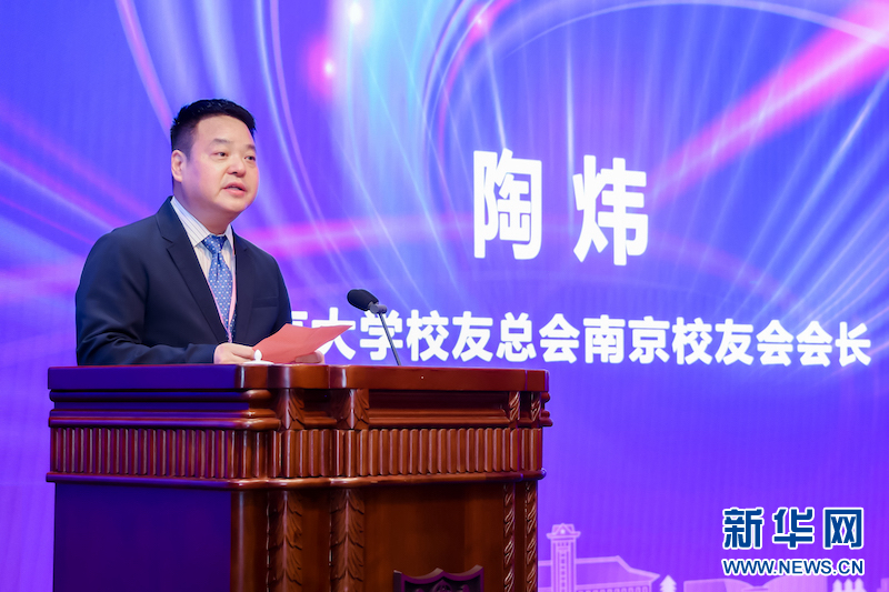 新当选会长陶炜在大会上致辞。“121年以来,南京大学培养造就了成千上万、以献身中华民族伟大复兴为己任的各类英才。今天成立的南京校友会将是属于全球50万校友群体的又一个精神家园和联络联谊的新平台。”他表示,南京校友会将提高政治站位,坚持党对校友会工作的领导,与全球112个校友组织一同继续传承和弘扬母校的优良传统,加强联系,互通信息、服务校友,为更好地促进地区社会经济文化发展,更好地促进校友职业发展以及其所在机构发展,以校友群体广泛而深刻的社会贡献、成就声誉促进母校发展,为实现“第一个南大”的目标而贡献校友力量,为以中国式现代化全面推进中华民族伟大复兴贡献所有“南大人”的力量。