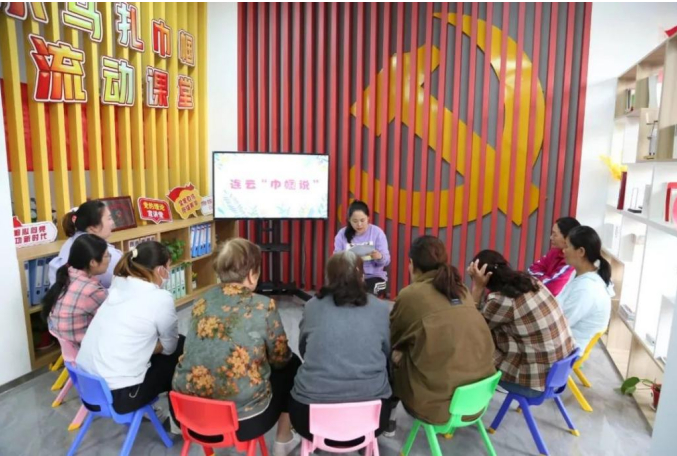 “团结和带领广大妇女群众感党恩、听党话、跟党走,是党交给妇联组织的重要任务。”连云港市妇联副主席陈红说。2022年4月以来,连云港市妇联联合市委组织部、市委宣传部在全市实施开展“小马扎巾帼流动课堂”直通车“十个一”行动,打造群众身边的红色流动课堂,及时向基层群众宣传党的声音,打通全面联系服务妇女群众的“最后一公里”。
