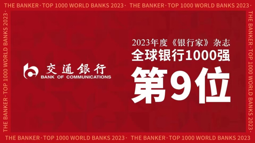 从交通银行苏州分行获悉,7月5日,《银行家》杂志(The Banker)在其官网公布了2023年度全球银行1000强最新榜单。按照一级资本排名,交通银行以1454.43亿美元位居全球银行第9位,较上一年度上升1位。