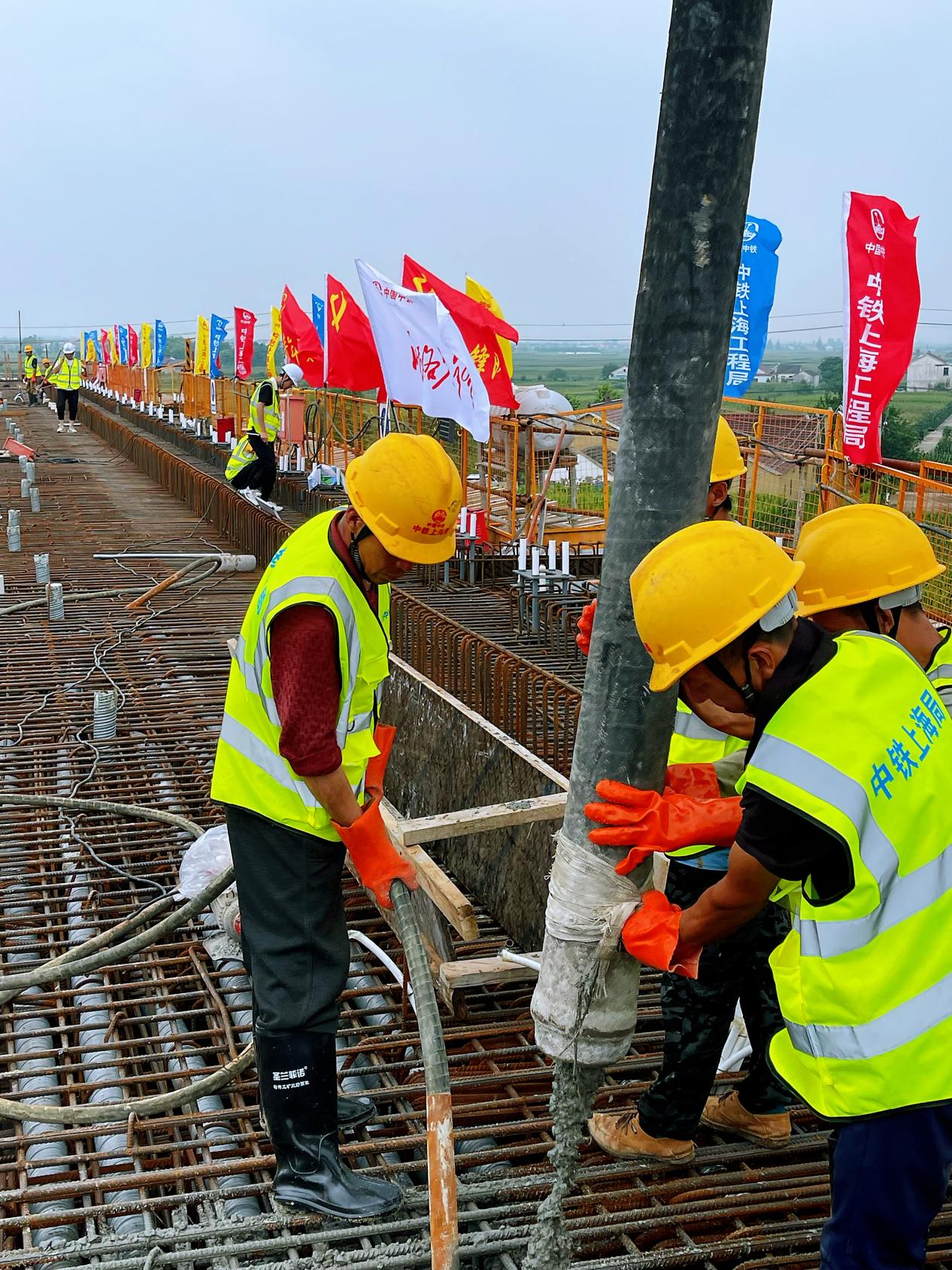 7月8日,由中铁上海工程局承建的大丰港特大桥首个整体现浇连续梁成功浇筑。标志着盐城大丰港铁路支线工程建设又向前迈进了一步。