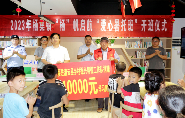 “这一项目已经成为解决‘一老一小’这个突出民生问题的民心工程。”杨集镇镇长夏云亮表示,镇党委政府负起主体责任,协调各方力量,在政策保障、资金支持、力量配合上形成合力,建立职能部门、公益组织、志愿服务组织与社会工作服务机构常态化合作机制,充分发挥公益组织的筹资优势、志愿服务的人力优势和社会工作的专业优势,为爱心“暑托班”工作开展提供有力保障。开班仪式上,江苏省委驻灌云乡村振兴帮促工作队向杨集镇爱心“暑托班”捐赠了价值10000元的学习用品。