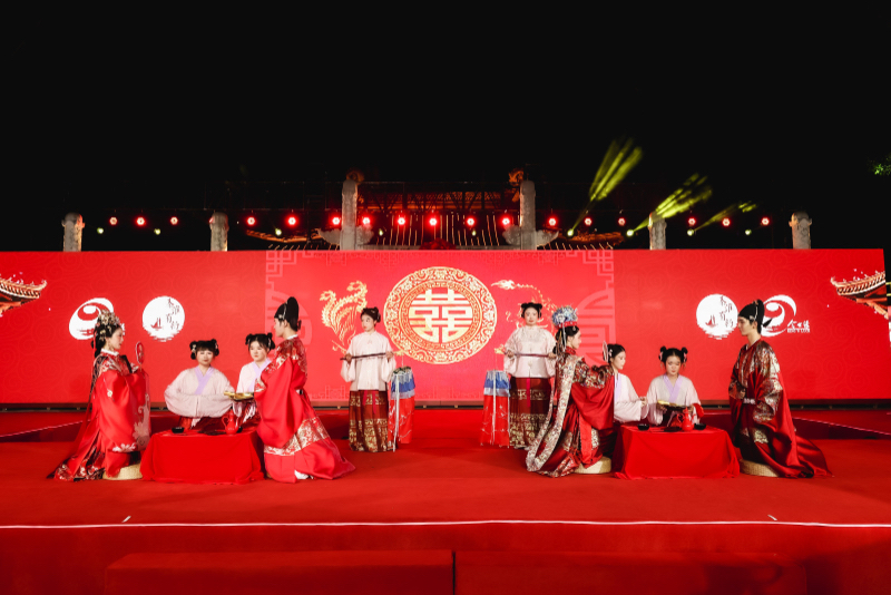 活动现场还发布了“秦淮婚恋季十大婚拍场景”、秦淮婚恋季特色喜宴酒店。在悠扬的乐声中,夫子庙中式婚礼秀压轴出场—新人行沃盥礼,同牢礼,合卺礼,最后面向大成殿,行拜礼。