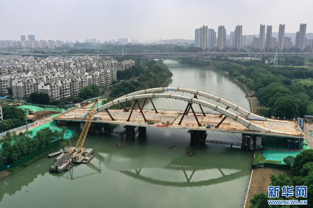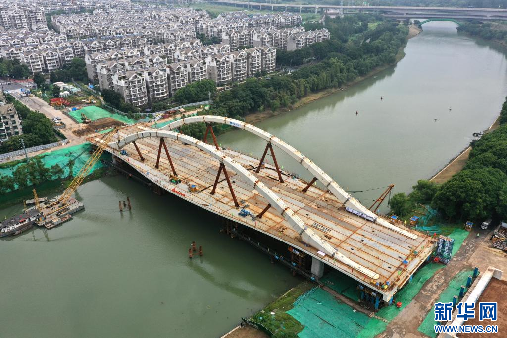 这是8月15日用无人机拍摄的南京梅苑南路跨秦淮新河大桥施工现场。