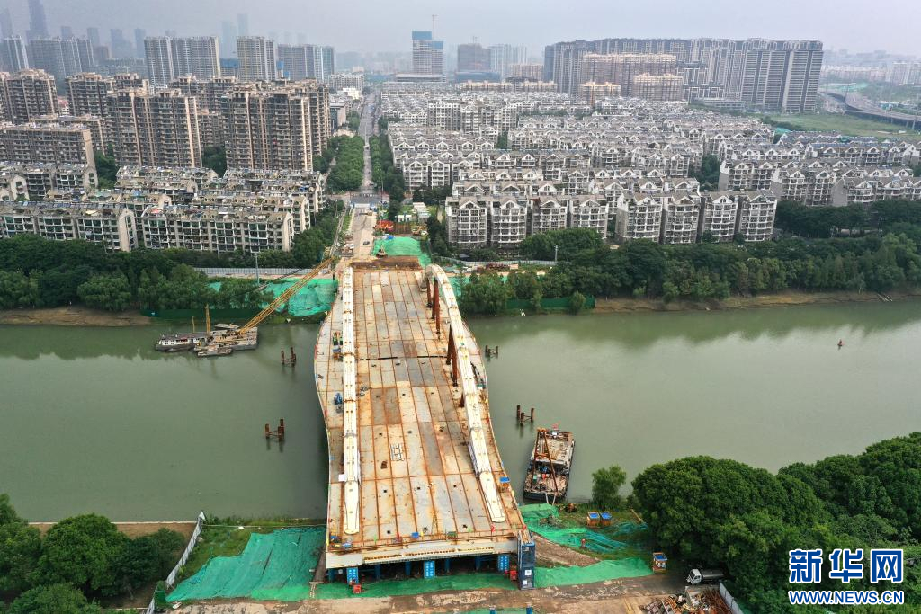 8月15日,随着长168米,重量达5200吨的桥梁主体被顺利顶推,稳稳落在秦淮新河北岸上,由中建三局承建的南京梅苑南路跨秦淮新河大桥项目顺利完成钢结构桥梁顶推施工,为实现全桥按期通车的目标奠定了坚实基础。梅苑南路跨秦淮新河大桥建设工程项目位于南京市雨花台区,路线总长约850米,建成通车后将进一步改善区域交通环境,为市民出行提供便利。记者 李博 摄