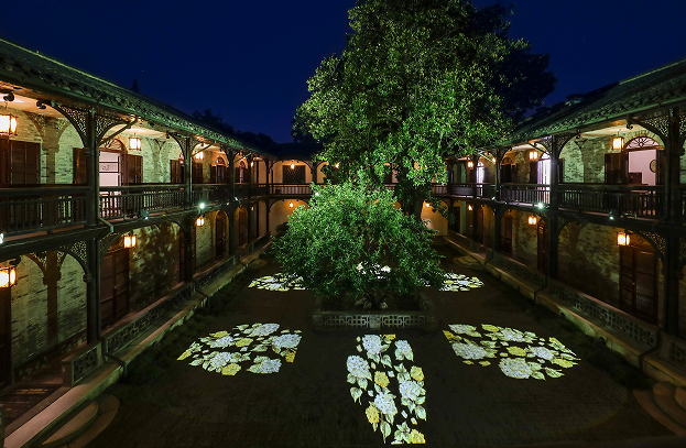 而夜幕下的何园又将展现出什么样的风采?29日晚,在“何家千金”的带领下,游客们漫步夜色中的何园,宛如人间仙境,令人恍惚间穿越到了另一个时代的光景。一路途经“夕照江山、漫花水夜、流光岁影、月照西楼、玉华文绣、片石夜画”主题夜游夜景区,给人强烈沉浸感的不仅是那代表着人文风华的“只此青绿”光影,更有诗与画、水与山、艺与亭、人与景、景与乐等独具特色夜游产品的呈现。