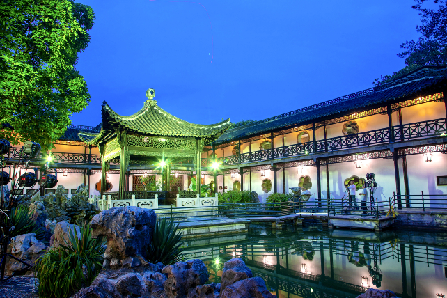 何园,一座私家住宅园林,始建于清光绪九年(1883年),何芷舸重修。园名从陶渊明“倚南窗以寄傲”“登东皋以舒啸”取意,称寄啸山庄。因主人姓何,俗称何家花园、何园。白天,漫步何园,宛如置身于诗画之中。花格窗、片石山房、复道回廊、一个个经典的特色建筑诉说着这座园林的曾经芳华。
