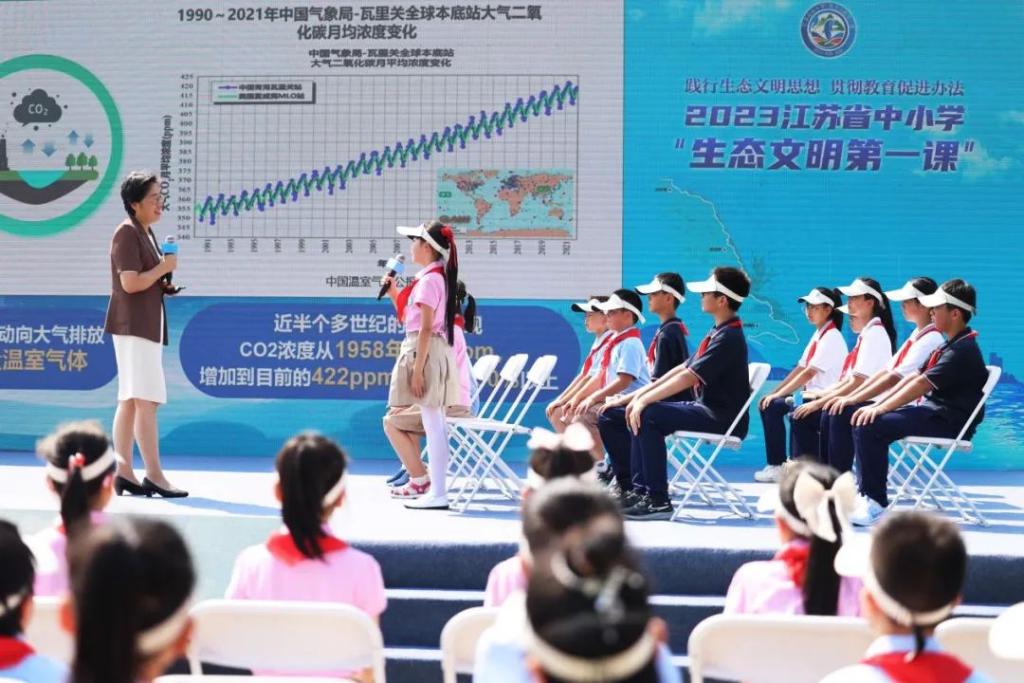活动现场,南京信息工程大学原副校长、大气科学学院教授、博士生导师江志红从全球变暖及原因、气候变化对生物多样性和生态系统的影响、应对气候变化江苏所做的举措和取得的成果、如何低碳生活等方面,为同学们带来了一堂生态环境教育课,并带领同学们现场研学。