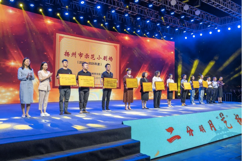 小剧场一头连着艺术创作、文化惠民,一头连着文旅消费、文化产业,是艺术和旅游深度融合的重要载体。活动现场举行了扬州市示范小剧场授牌仪式。少堂书场、戏曲园非遗实验剧场、扬州市文化馆“绿杨梨园”小剧场、魔方剧场、仁丰里小剧场、芍药园子-长乐客栈书场、扬州冬荣园艺术馆、翼立方小匣子儿童剧场、稻草人木偶小剧场、“寄啸于心”剧场等10家小剧场获得授牌。