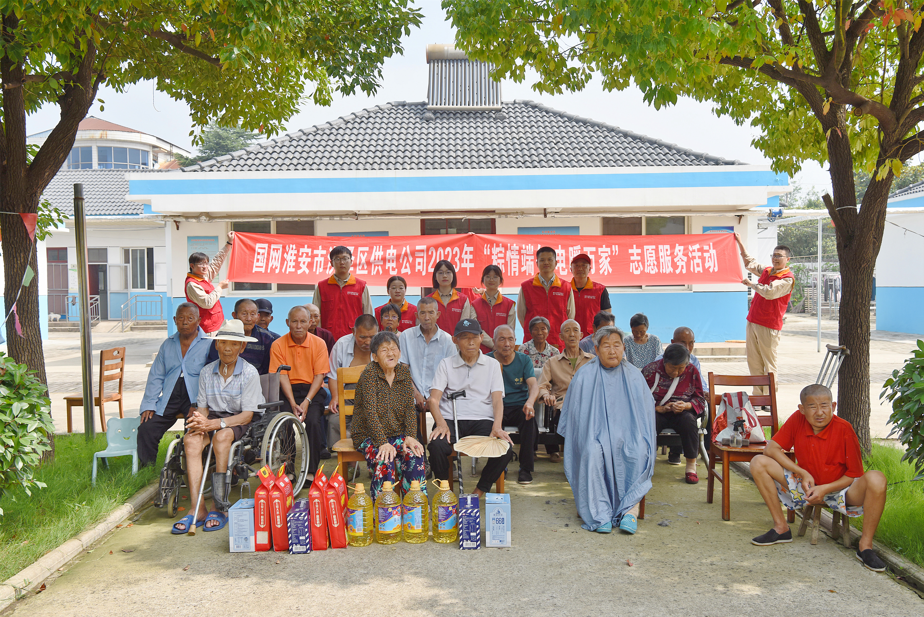 9月14日上午,国网淮安市洪泽区供电公司“青牛”志愿服务队走进洪泽朱坝敬老院,为老人送上了大米、食用油、牛奶等物品。