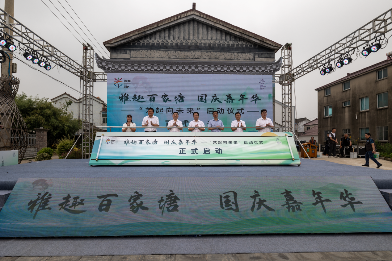 盛世华章呈气韵,月圆人圆合家欢。9月28日上午,溧阳市古县街道“雅趣百家塘 国庆嘉年华”开幕式在百家塘特色田园乡村开启。国家一级演员、锡剧名家张金华、万建焕参加活动。溧阳市委宣传部副部长、市新闻出版局局长马俊浩,市文联主席沈佳宾,古县街道办事处主任黄晓军,天目湖集团董事长邵钧以及市文旅局、住建局、农业农村局、融媒体中心等相关部门分管领导出席活动。