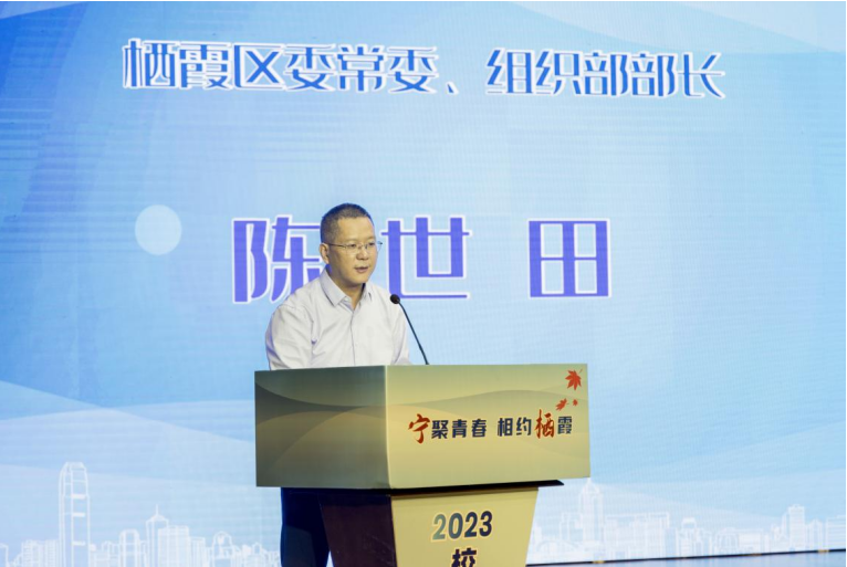 陈世田表示,“校园栖霞日”活动是打造最佳人才生态、最佳人才栖所的有力行动,是栖霞面向驻区高校发出的一张“邀请函”,诚挚邀请大家走出校园体验栖霞、了解栖霞、融入栖霞。栖霞是一片历史悠久、人杰地灵的宝地,更是一方激情创新、英才汇聚的热土。近年来,栖霞始终将人才作为创新发展的最强驱动、最强引擎,期待今后更多青年人才与栖霞双向奔赴、携手同行、共创未来。