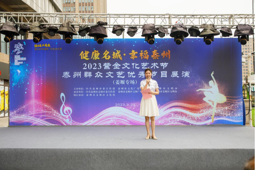 9月29日,泰州市姜堰区启动“健康名城·幸福泰州”2023紫金文化艺术节泰州群众文艺优秀节目系列展演(姜堰专场)活动,大力弘扬中华优秀传统文化,持续放大“堰上文澜”文化品牌效应,激发江苏省群众文化“百千万”工程优秀团队、个人和群众文化志愿者团队活力。