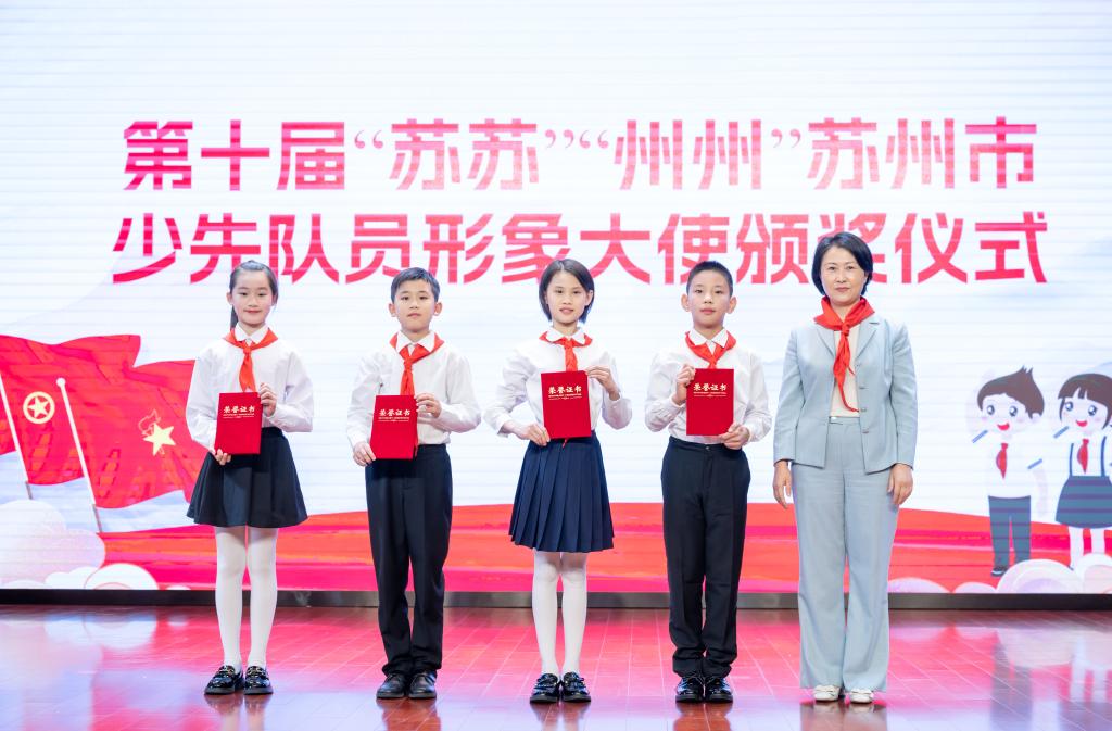 伴随《“苏苏”“州州”心向党 争做新时代好队员》视频,全体成员共同回顾“苏苏”“州州”成长历程,四位队员接过新一届“苏苏”“州州”形象大使接力棒并发表感言。