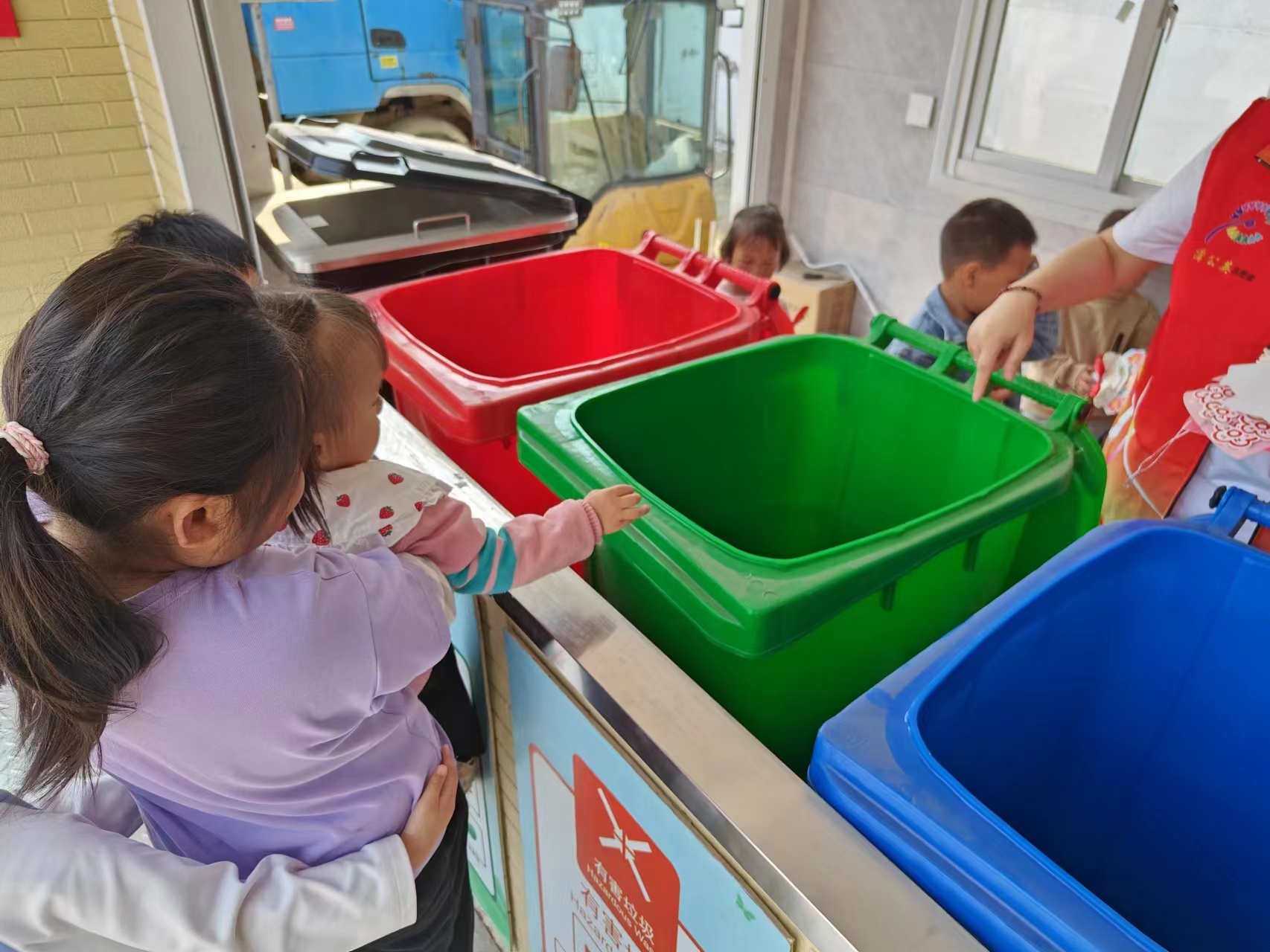 “一个放不可回收垃圾,一个放可回收垃圾,自打社区实施垃圾分类后,环境明显好了很多,苍蝇、蚊子明显少了。”杨庙社区居民李忠红正在自家门前分类整理生活垃圾。