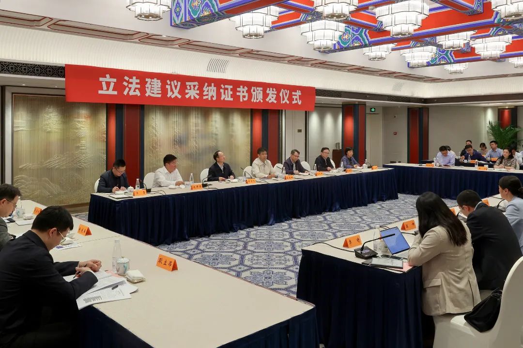 去年,省人大常委会印发《关于立法工作践行全过程人民民主的实施意见》,明确要探索建立立法意见建议采纳激励机制,激发人民群众参与立法工作的热情。为落实好相关部署要求,省人大常委会首次举行立法建议采纳证书颁发仪式,并介绍条例的征求意见及意见采纳情况。