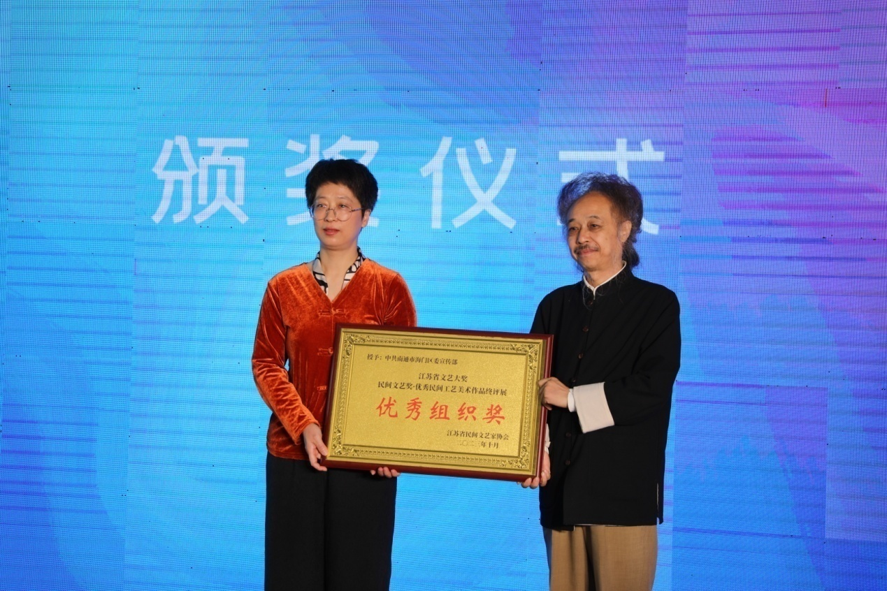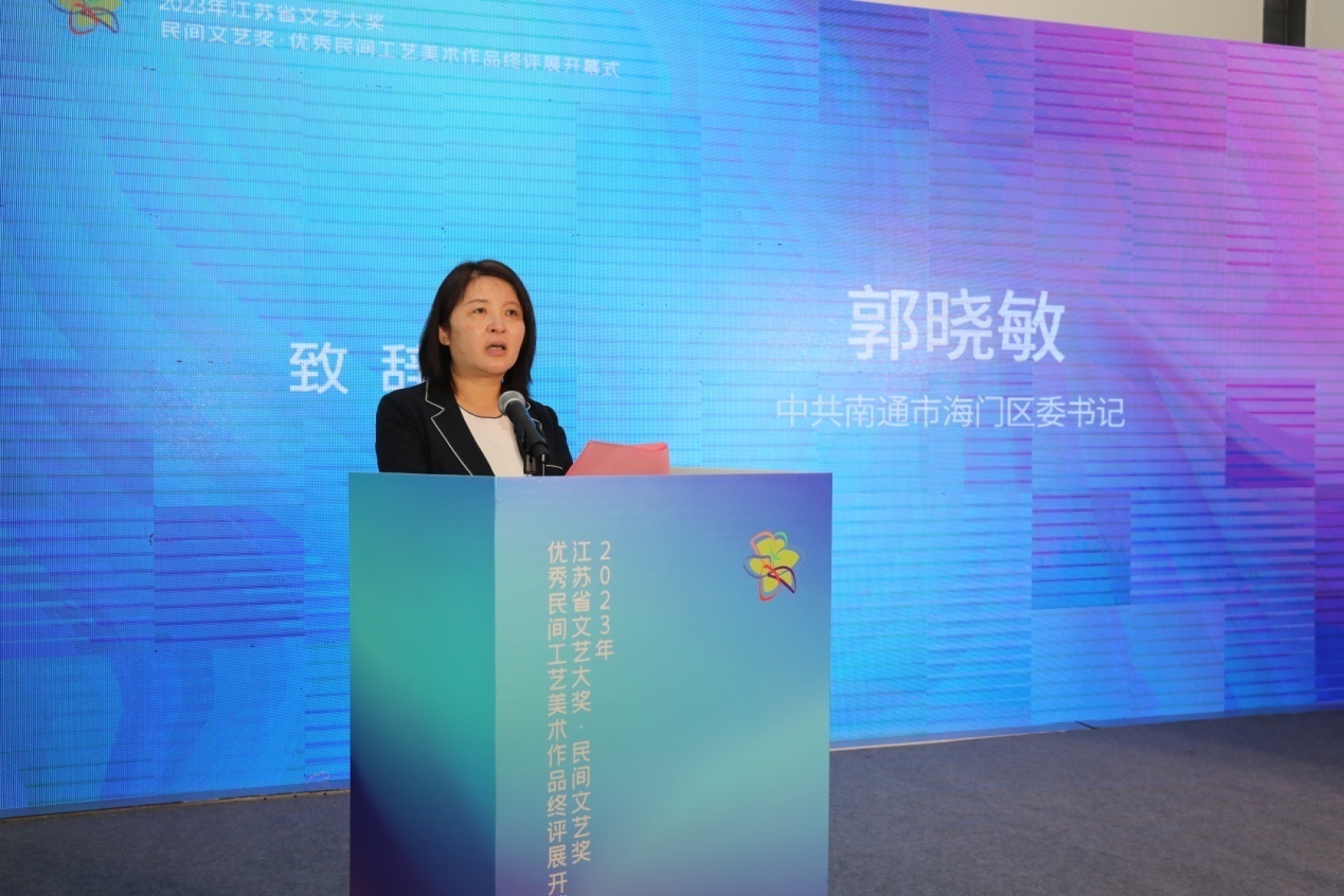 10月25日,由江苏省文联、中共南通市委宣传部、中共南通市海门区委共同主办的2023年江苏省文艺大奖·民间文艺奖·优秀民间工艺美术作品终评展在海门江海博物馆举行。江苏省文联、中国民协、省民协以及南通、海门的相关领导、专家以及部分艺术家代表等出席了开幕式。省民协向海门区委宣传部颁发了活动“优秀组织奖”。