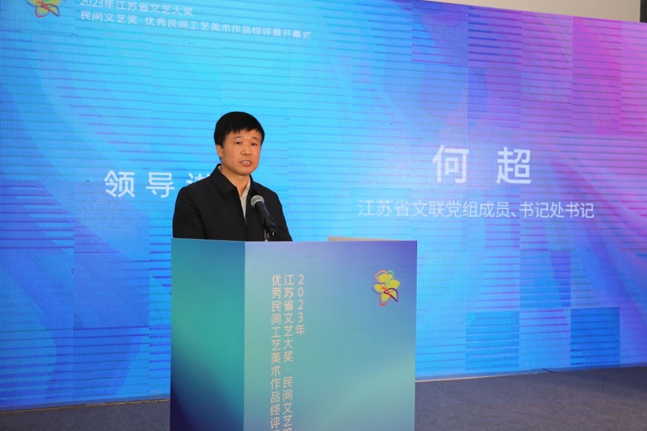 江苏省文联党组成员、书记处书记何超在致辞中介绍,江苏省文艺大奖是经省评比表彰领导小组办公室批准的全省文艺最高奖项。江苏民间文艺奖作为其奖项之一,已成功举办六届,推出了一大批具有较强艺术性、时代性的工艺美术精品,挖掘和培养了众多优秀民间文艺人才,有力地促进了江苏民间文艺繁荣发展。这些入围的作品,不仅展示了时代精神价值和社会文明发展成就,必将为推进中华优秀传统文化创造性转化、创新性发展、探索中华民族现代文明发挥积极作用。