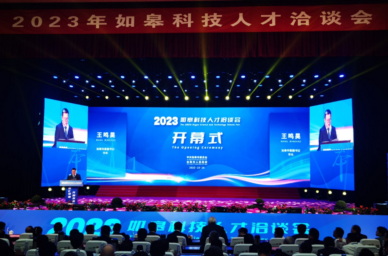 10月28日上午,2023年如皋科技人才洽谈会开幕式在如皋市行政中心礼堂举行。本届洽谈会的主题是“智汇皋地共创未来”,来自清华大学、上海交通大学、东南大学等全国近80所知名高校院所的100多位专家学者、200多位客商嘉宾应邀参会。