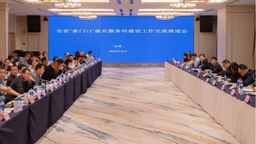 近日,江苏全省“家门口”就业服务站现场推进会在盐城召开,江苏省劳动就业管理中心主任夏文哲、省职业介绍中心主任李雄伟、省信息技术人才市场总经理李云飞,省就管中心分管主任、职能科室负责人和各设区市公共就业服务机构主要负责人,以及“家门口”就业服务站建设工作相关业务骨干等约70人参加会议。