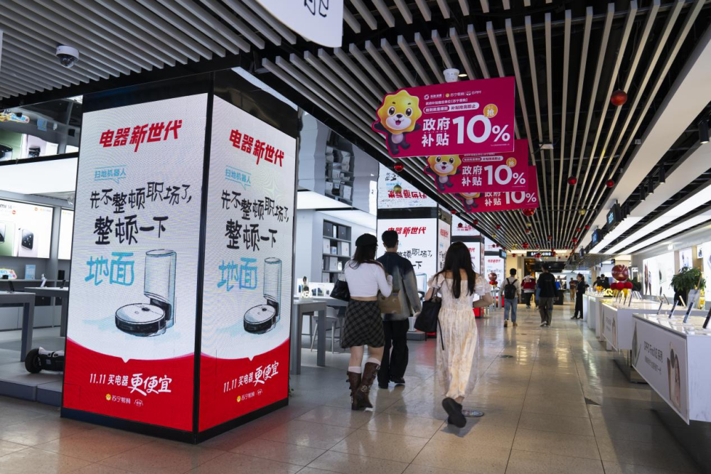 完善潜力网。县域市场是我国脱贫攻坚取得决定性成果所激发的最具潜力的消费市场。苏宁易购及时抓住政府刺激消费的良好机遇,提前谋划县域市场实体网络的建设,今年前三季度合计新开县域门店数达1584家,前三季度零售云渠道商品销售总规模同比增长28.12%。双十一期间,苏宁易购进一步在“11.11新家电下乡”大会上表示,未来三年,将在下沉市场布局30000店,实现家电下乡超500亿销售规模,以旧换新补贴超2亿元,开展超3万场活动,帮助100万个家庭家电换新,激活县乡“家消费”潜力,助力乡村振兴。