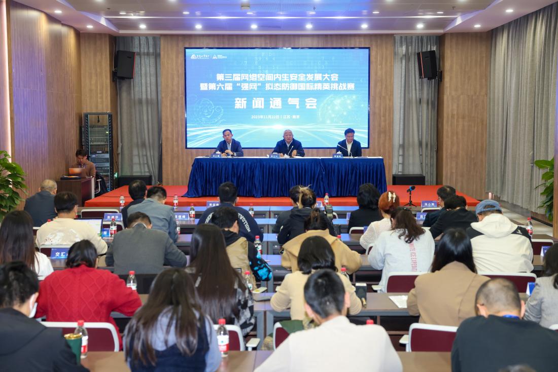 11月22日,大会新闻通气会在紫金山实验室召开。通气会由江宁经济技术开发区管委会副主任、紫金山实验室副主任汤小南主持,中国工程院院士、紫金山实验室首席科学家邬江兴,南京市互联网信息办公室副主任黄益峰分别对本届大会及挑战赛有关情况、特色亮点等进行详细介绍。