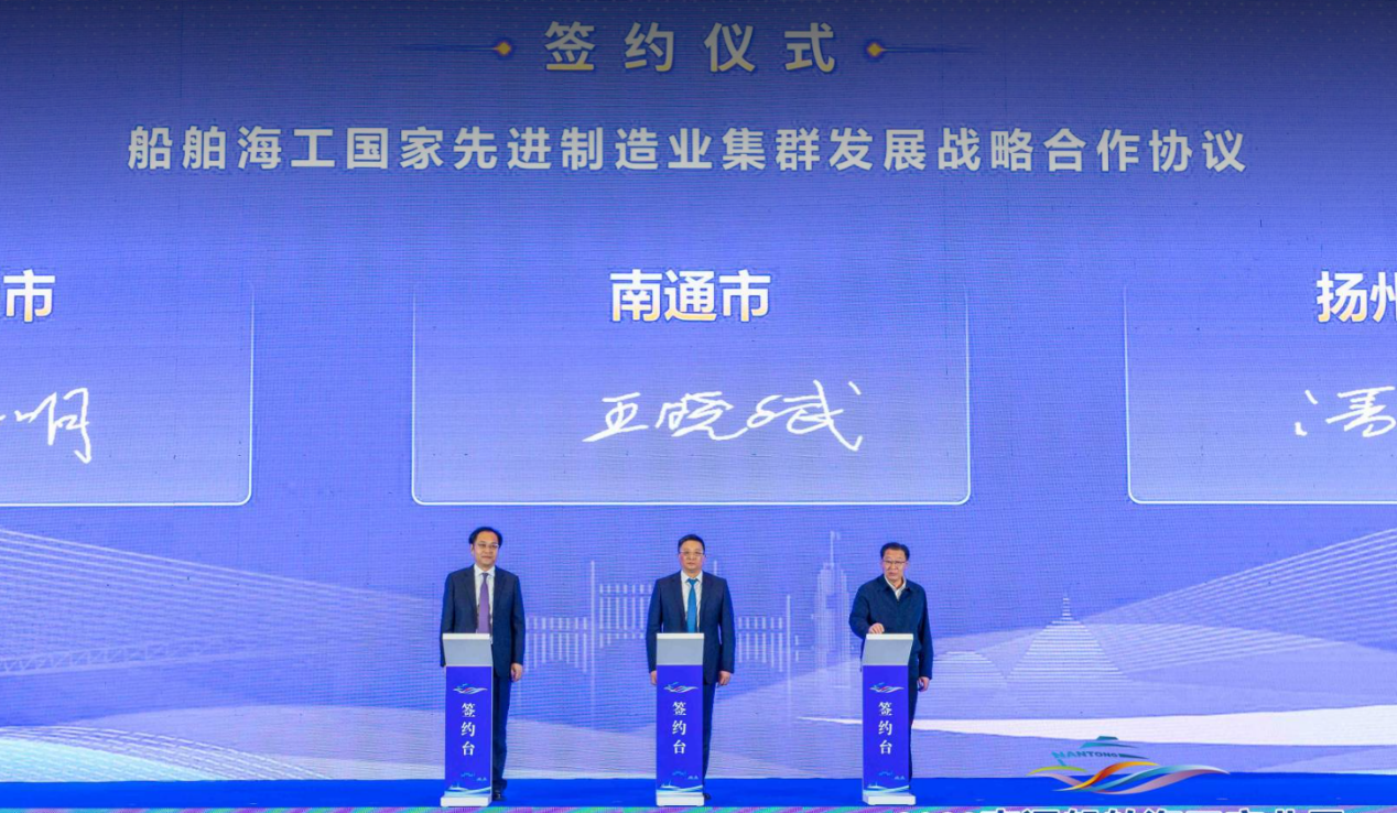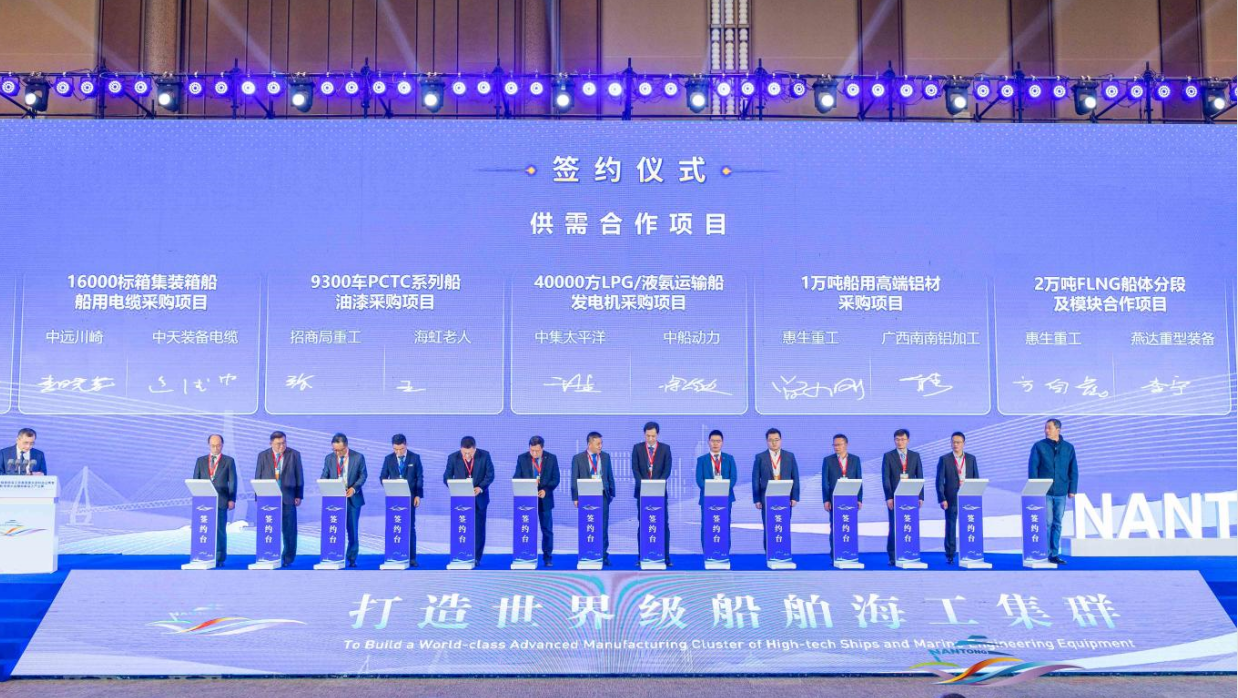 开幕式上,通泰扬三地签订船舶海工国家先进制造业集群发展战略合作协议、工信部人才交流中心与南通市人民政府签署战略合作协议、19个重点项目集中签约。