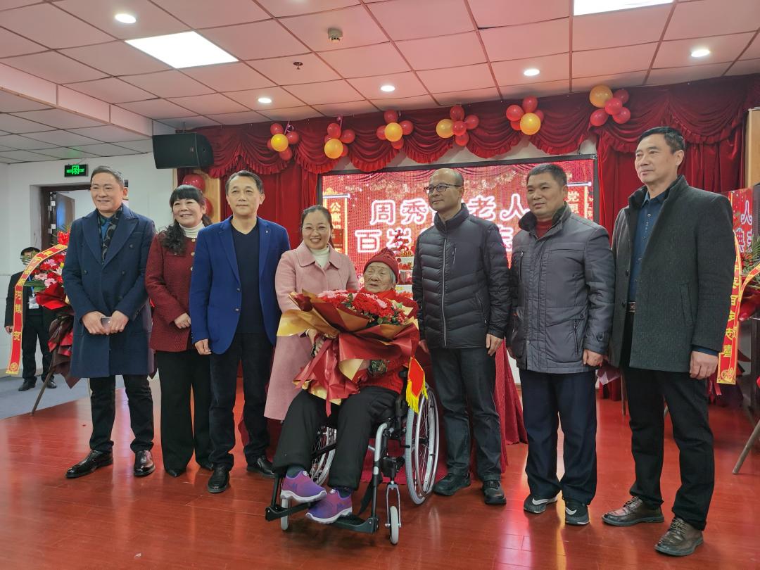 近日,阜宁县老年公寓内不时传出欢声笑语,洋溢着一派欢乐祥和的气氛。一群人围拥在“百岁老人”周秀英身边,由县民政局牵头为老人举办百岁庆典,笑意始终挂在老人的嘴角。