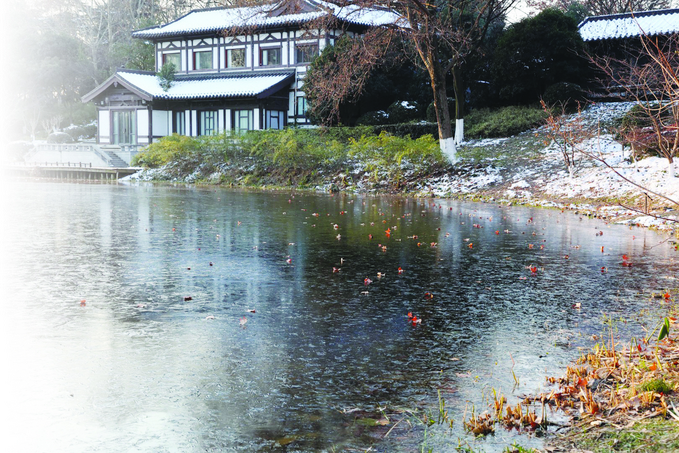 持续低温导致南京玄武湖部分湖面结冰 宋宁 摄