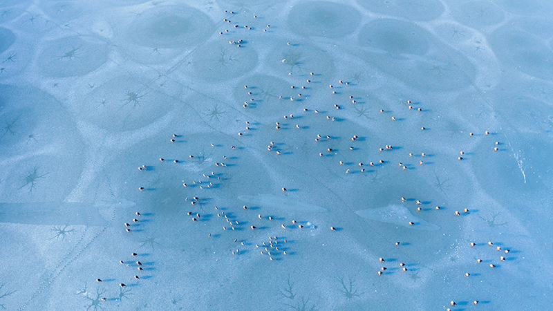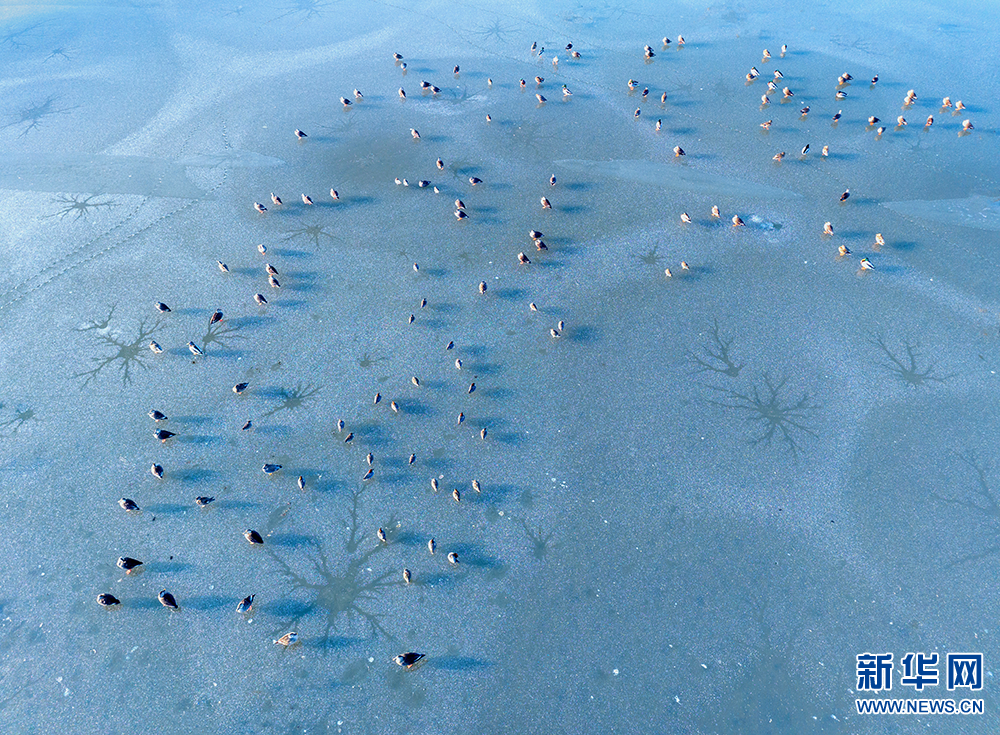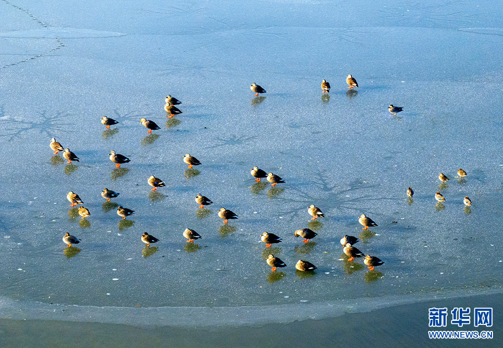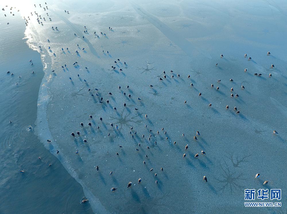 隆冬时节,江苏泰州兴化市的里下河国家湿地公园里静谧安详,连日的低温冰封了水面。冰面上,大自然鬼斧神工刻画出神奇的图案,斑嘴鸭等众多“湿地精灵”纷纷驻足歇息,构成一幅幅生态美景。(李南丹 报道员:史道智)