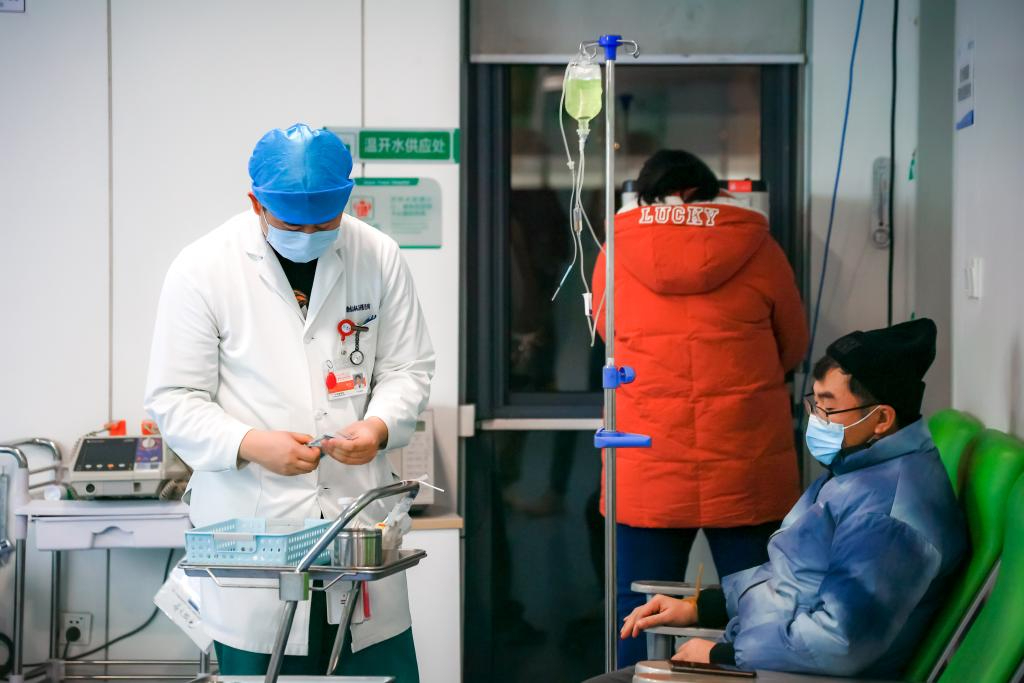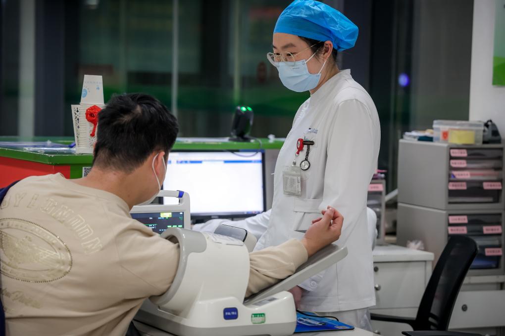 跨年夜,位于江苏南京的泰康仙林鼓楼医院医护人员坚守岗位,忙碌在急诊室一线,守护患者的生命安全和身体健康。(嵇子鉴 余恩荣)