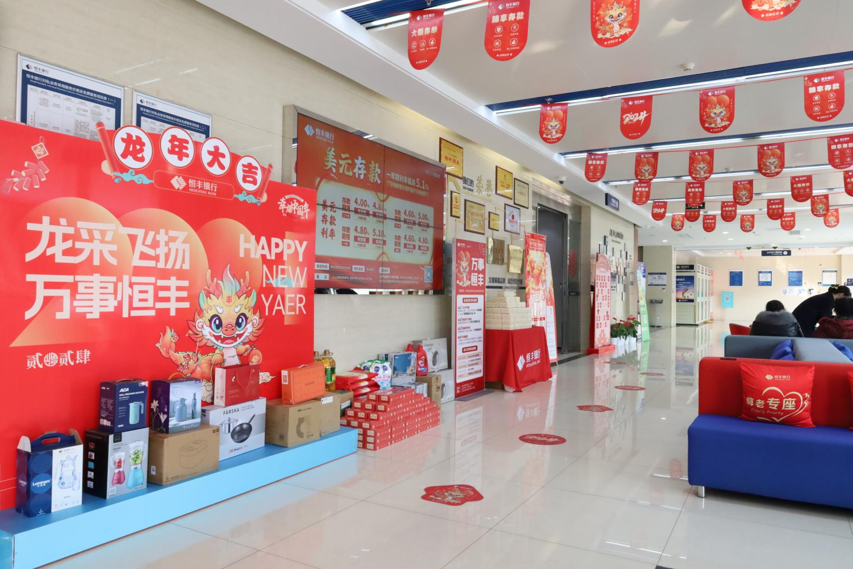 为进一步浓厚活动氛围、提升客户体验,恒丰银行南京分行各网点纷纷扮靓厅堂,通过张贴龙年窗花、吊旗,悬挂红色灯笼挂饰,摆放新年摆件等营造喜庆、温馨的服务环境。经过精心设计和布置,各网点焕然一新、亮点纷呈,营业大厅更加温馨整洁,节日氛围扑面而来,走进厅堂的客户们在办理业务的同时,既能够感受传统的新年民俗文化,还能够参加抽奖领红包及油、厨具等实用礼品,喜气洋洋“厅堂红”点燃了势如破竹“开门红”。