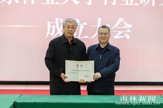 南京林业大学校长勇强为曹福亮院士颁发竹业研究院首席专家聘书