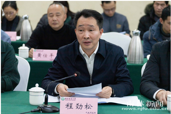 程劲松对竹业研究院的成立表示祝贺,他回顾了遵义市与南京林业大学的合作历史。他指出,多年来,南林大专家扎根黔北山区,下“竹”功夫,做“竹”文章,让当地百姓在绿山包里“鼓腰包”。南林大不断推动科技成果与绿色产业发展精准对接,探索出一条“政产学研用”五位一体科技帮扶模式,在科技助力遵义乡村振兴上持续贡献南林智慧和力量。