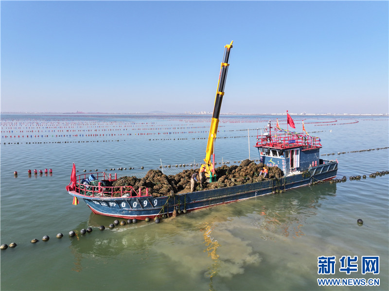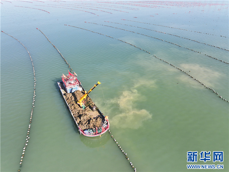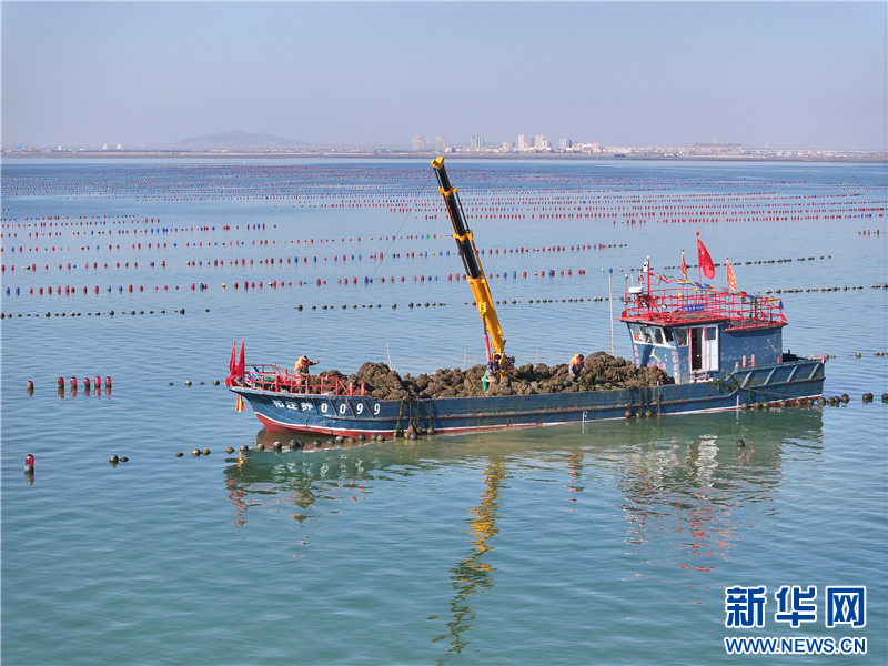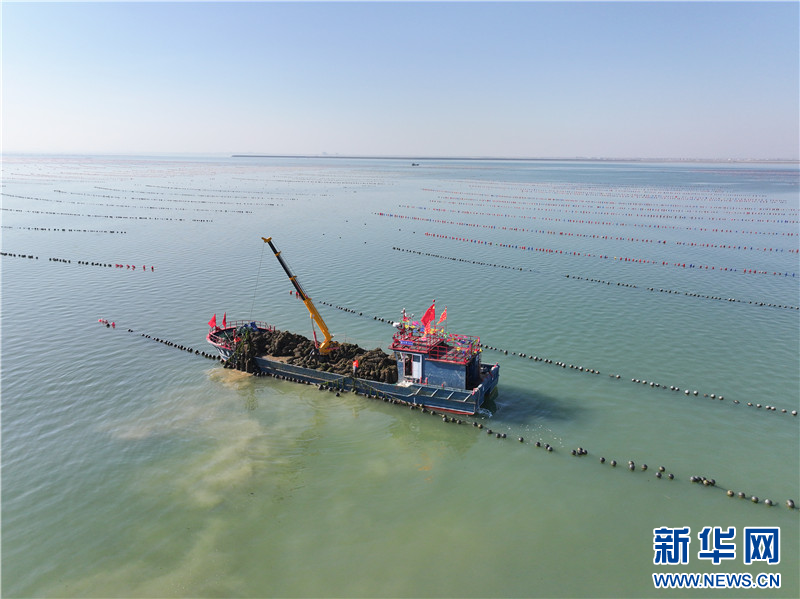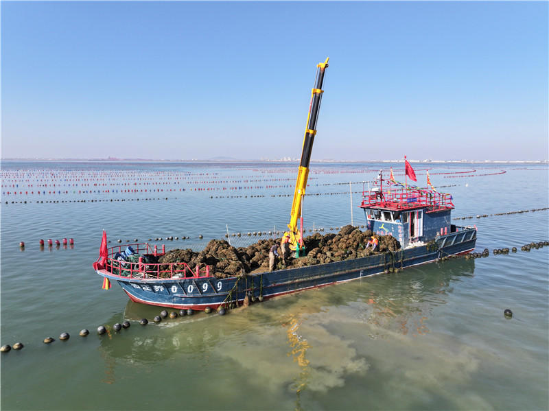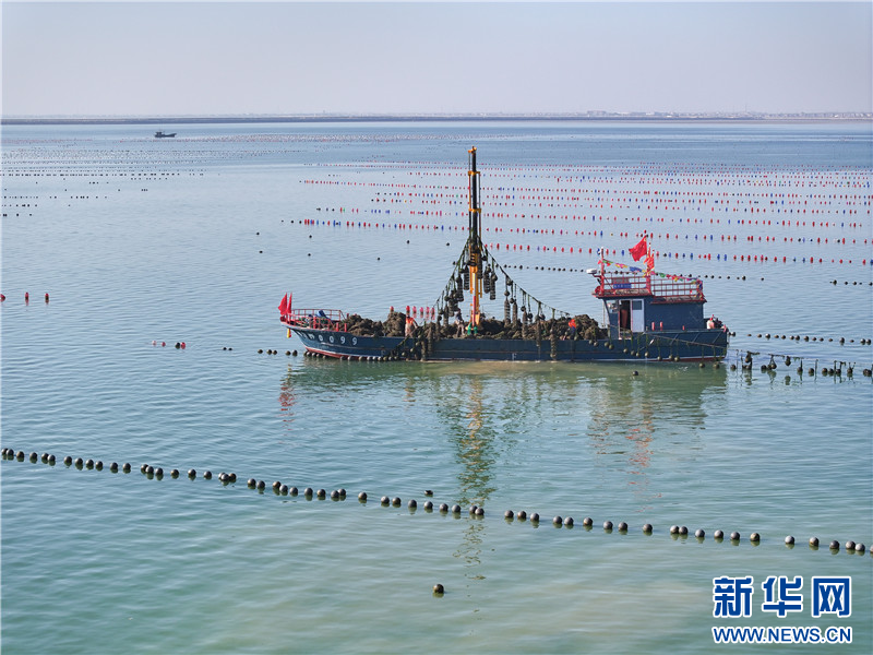 在江苏连云港市赣榆区柘汪镇沿海养殖区,渔民在收获海蛎子。