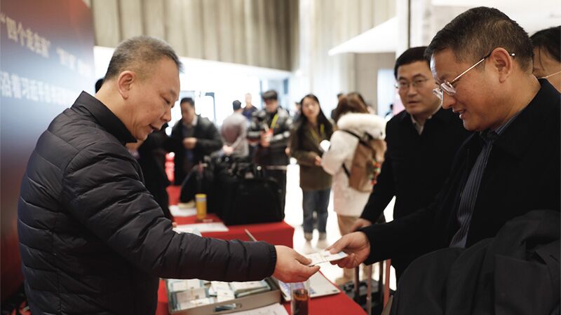 在大会报到处,代表们有条不紊地核对信息、领取证件和会议材料,有序办理报到手续。