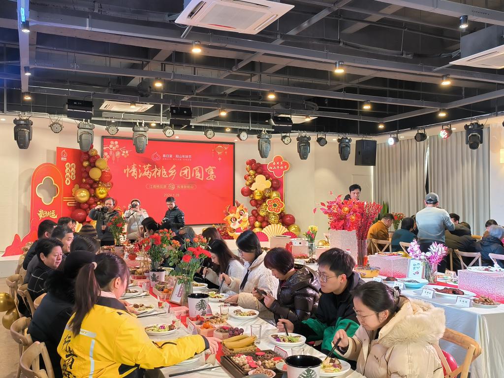 值得一提的是,阳山镇还举办了一场心意满满的团圆宴。当地好人代表、劳模、优秀大学生代表、外卖骑手、留守职工等各类先进典型代表齐聚一堂,共话桃乡美好明天。