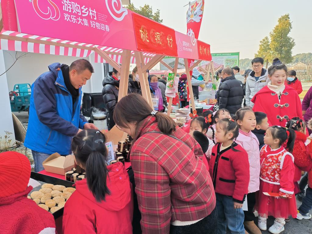 记者现场看到,此次年货市集汇聚了阳山特色农产品、桃木工艺品、农家乐特色菜等40余个展位,浓浓烟火气不仅让桃乡年味十足,更给村镇增添了邻里走动话家常的和谐氛围。