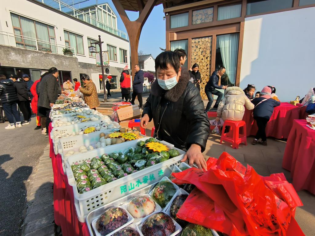 “听说今天这里有集市,我们特地从市区赶过来,就是为了让孩子体验一下过年习俗,再买一些正宗的阳山糕团送给亲朋好友。”一大早,无锡市民刘女士便携家带口来到阳山寻找年味。