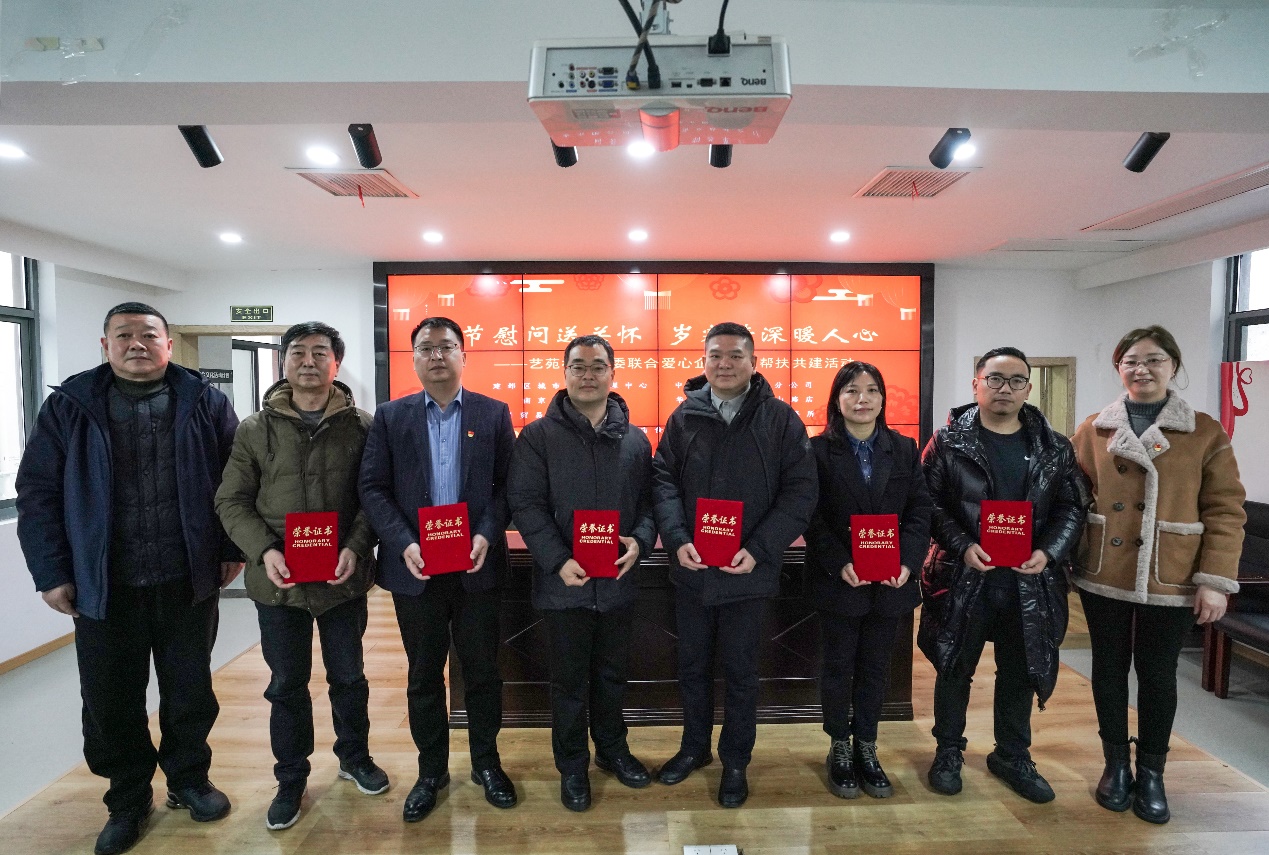 随后,曹庆瑜与张梅一起为共建单位颁发“荣誉证书”,并送上新春祝福。随后,共建单位为困难居民代表、优秀党员志愿者送上大米、色拉油、草鸡蛋等“暖心慰问”。